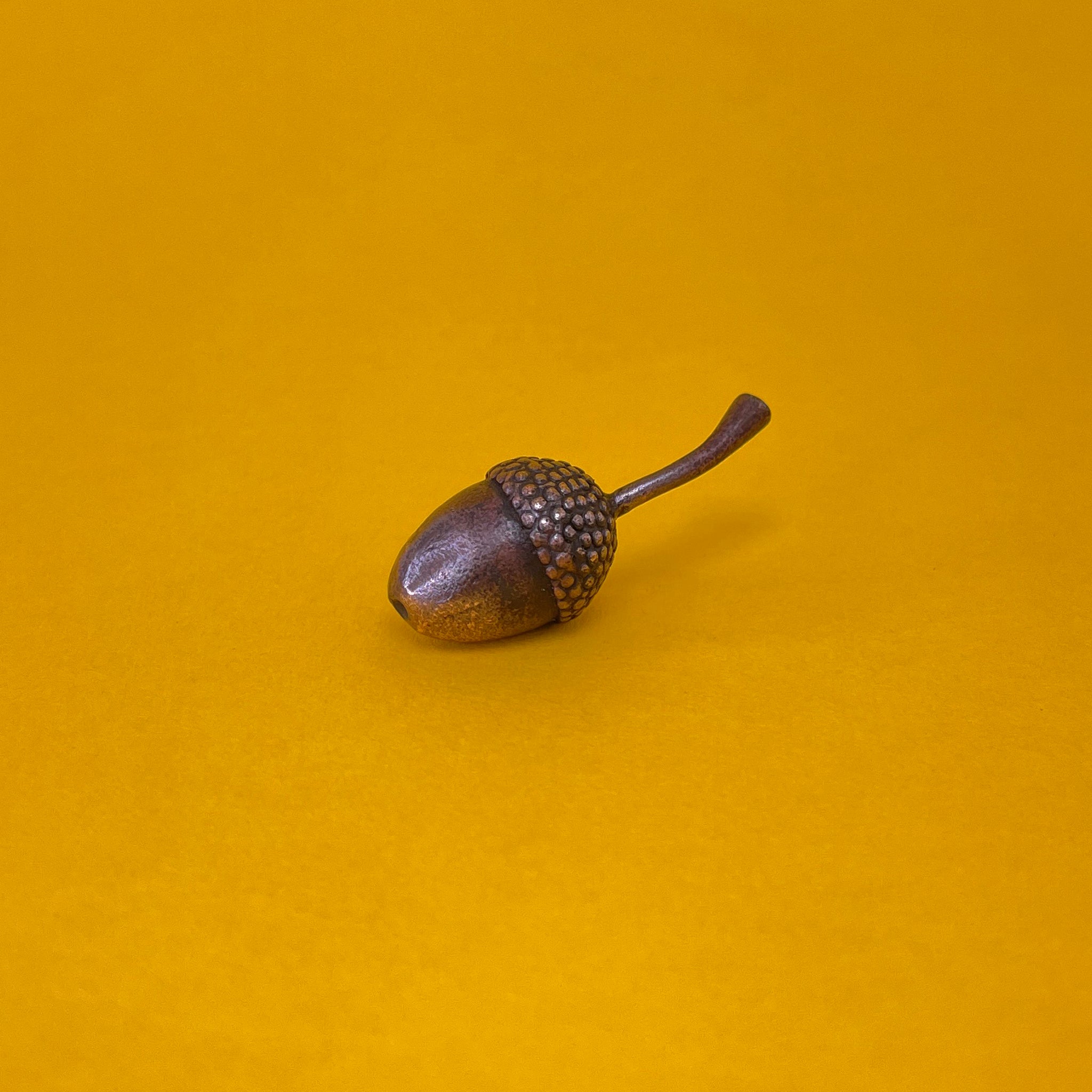 Miniature cast bronze sculpture capturing an acorn. Beautifully modelled and lightly burnished. This piece is presented in a small fabric bag.