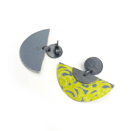 Elegant aluminium, and oxidised silver stud earrings.These are articulated to allow movement. The ear posts and backs are sterling silver.