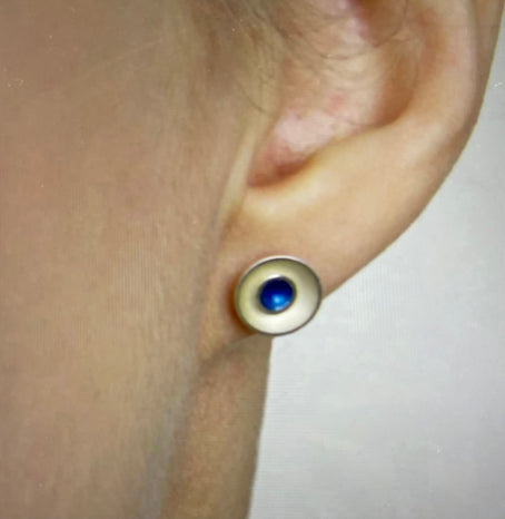 Size: Outer silver disc diameter 1cm. Diameter of enamel stud disc 5mm