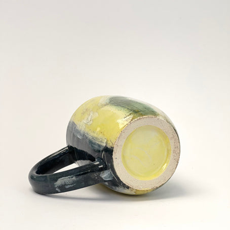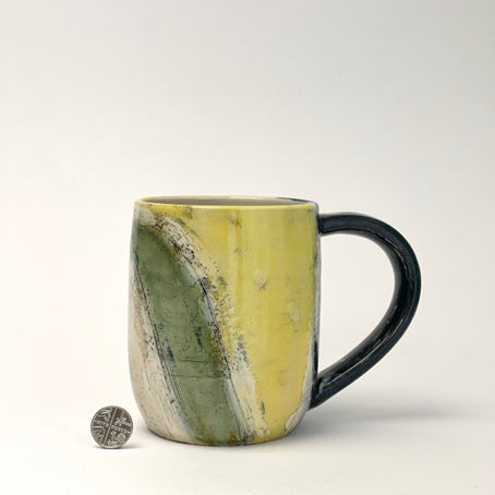 Hand made glazed ceramic jug – functional and decorative. Inspired by the agricultural landscape around the East Yorkshire Wolds where the artist lives. The yellow rapeseed oil fields dominating for a couple of months in early summer.