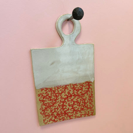 These are beautifully made ceramic boards, perfect for display or use as a cheese board. Half glazed in white and the other half with a complimentary pattern on the natural stoneware.