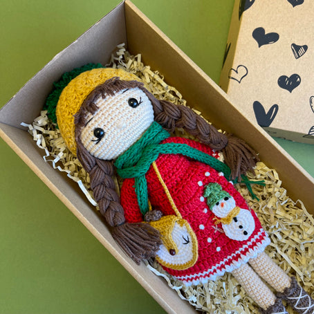 This beautiful doll is hand made with the utmost skill. We were blown away with the absolutely amazing level of crocheted detail. Perfect gift as a treasured companion for a child or as a display item in their room. Destined to be a heirloom for the next generation. There is even room in her little bag to hold a special message !