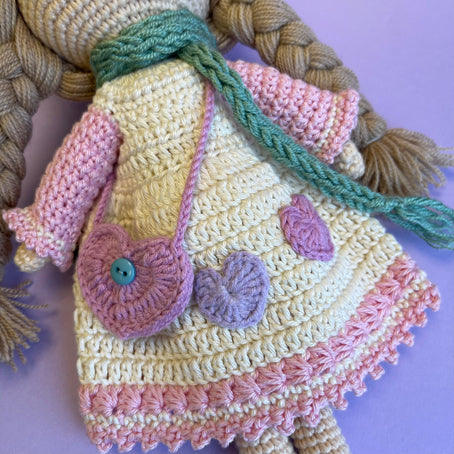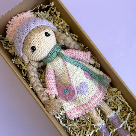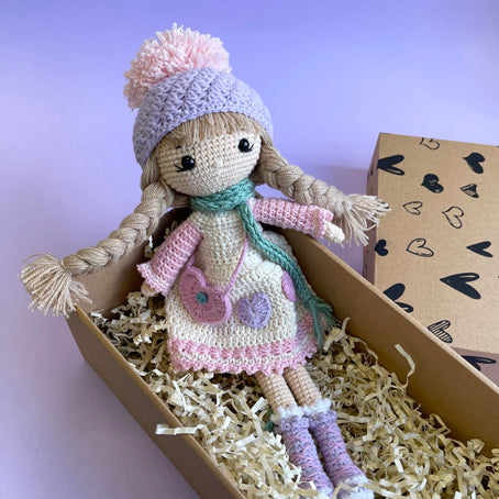 This beautiful doll is hand made with the utmost skill. We were blown away with the absolutely amazing level of crocheted detail. Perfect gift as a treasured companion for a child or as a display item in their room. Destined to be a heirloom for the next generation. There is even room in her little bag to hold a special message !