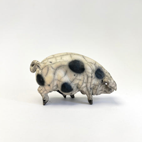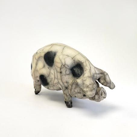 Beautifully observed and hand modelled trotting Raku ceramic pig. Each piece is unique. The crackle glaze adding to the character of each piece.