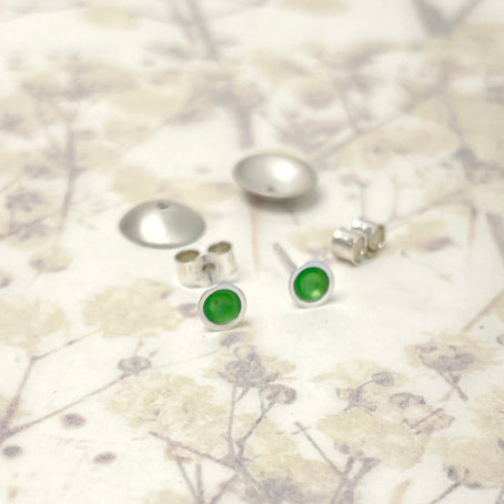 Two-in-One Studs, Sterling silver and grass green enamel stud earrings.