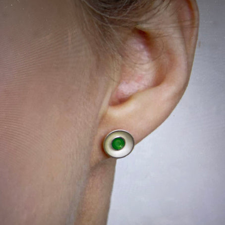 Size: Outer silver disc diameter 1cm. Diameter of enamel stud disc 5mm