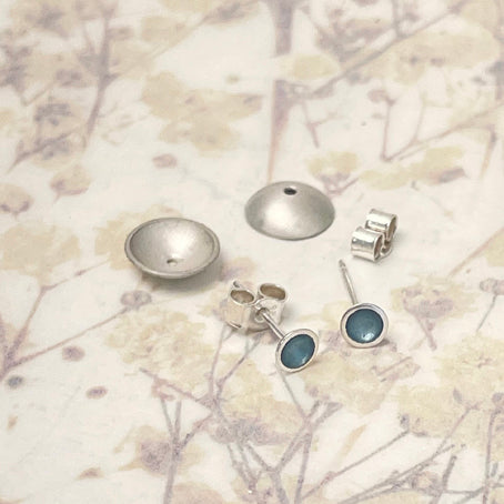 • Load image into Gallery viewer, Silver and ice blue enamel studs