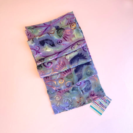 This is a traditionally made, hand painted 'devoré' velvet scarf - coming from the French verb 'to devour'. Using a chemical process to dissolve the viscose velvet fibres, this leaves a semi-transparent pattern against the more solidly woven fabric. Popular in the 1920's and revived in the 1980s by Jasper Conran it still looks, feels and wears beautifully today.