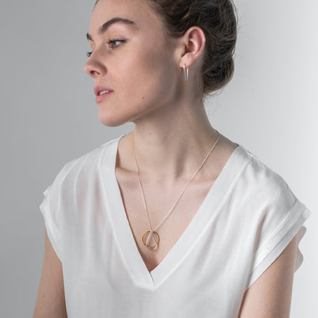 A gold plated over silver textured hoop necklace with a polished silver teardrop shape, comes on an adjustable 16" - 18" sterling silver chain. Beautifully presented in a slimline metal tin.