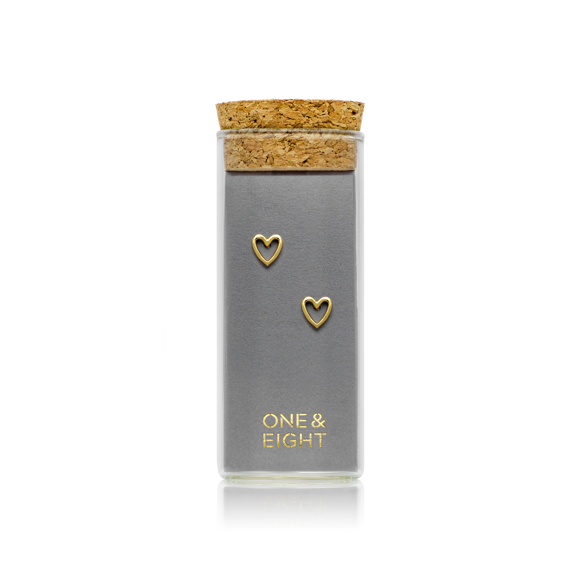 Dainty gold plated over sterling silver heart studs. Beautifully presented in a little glass jar with a cork lid.