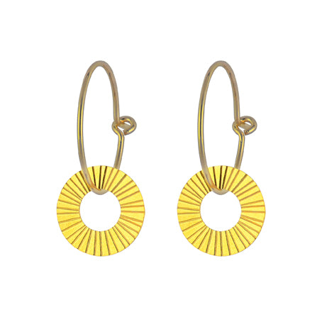 Modern gold plated over sterling silver textured charm on a gold plated over sterling silver hoop. Beautifully presented in a little glass jar with a cork lid.