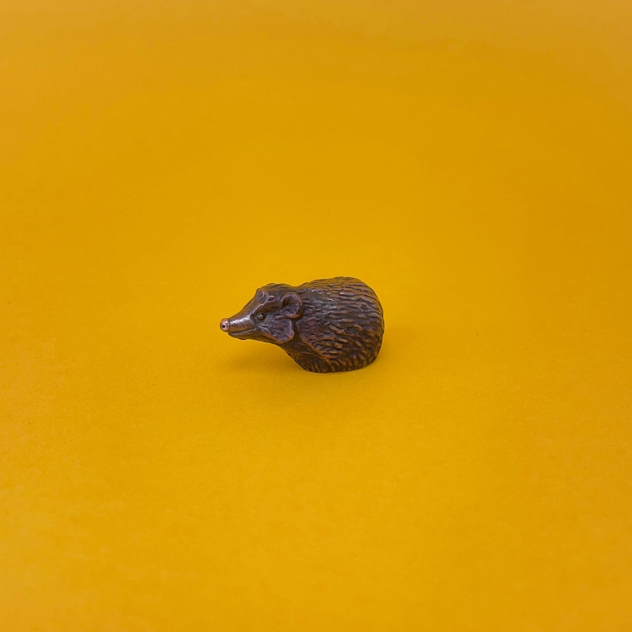 Miniature cast bronze sculpture capturing a little hedgehog rambling home. Beautifully modelled and lightly burnished. This piece is presented in a small fabric bag.
