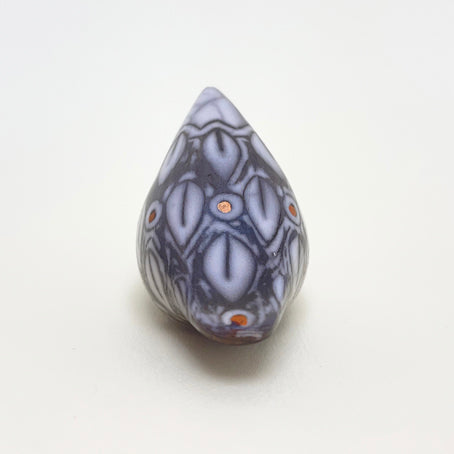 This raku ceramic bird is finished with a feather pattern. Handmade using a stoneware clay. Copper lustre is applied to give details. It is Raku fired outside in a gas kiln. It is then cleaned and polished using clear beeswax.