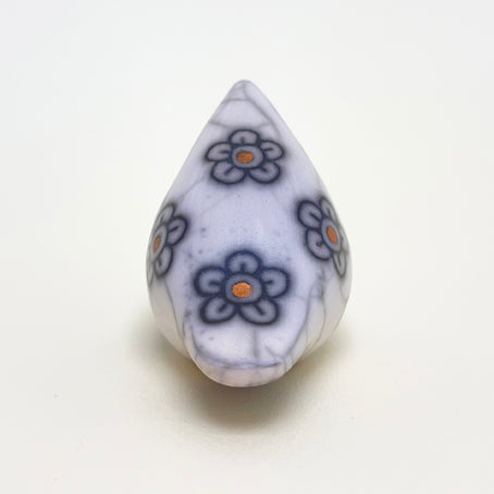 This raku ceramic bird is finished with a floral pattern. Handmade using a stoneware clay. Copper lustre is applied to give details. It is Raku fired outside in a gas kiln. It is then cleaned and polished using clear beeswax.