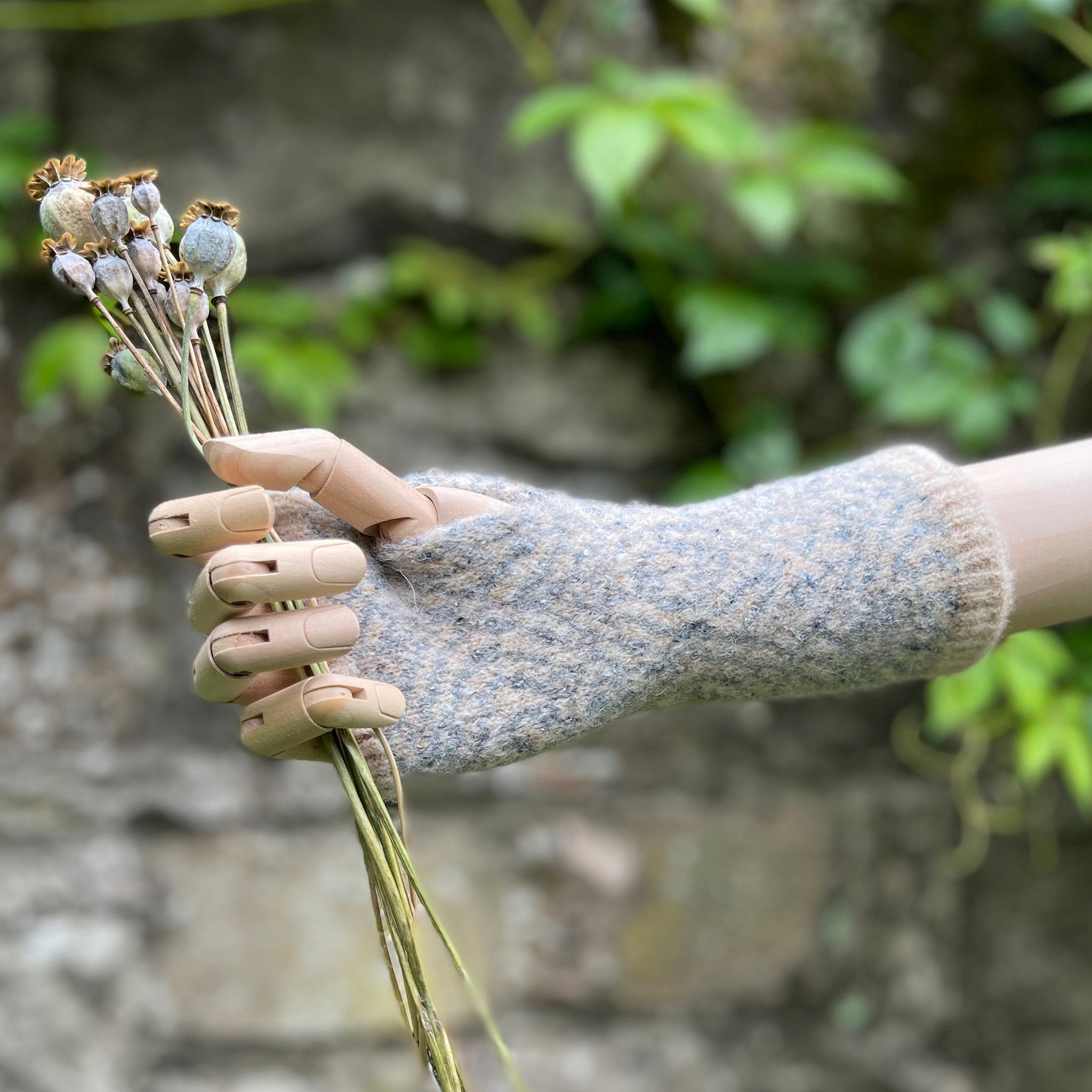 These are hand made in Ireland using luxury yarns. They are super soft and cosy. Made with wool, alpaca, silk and elastan.