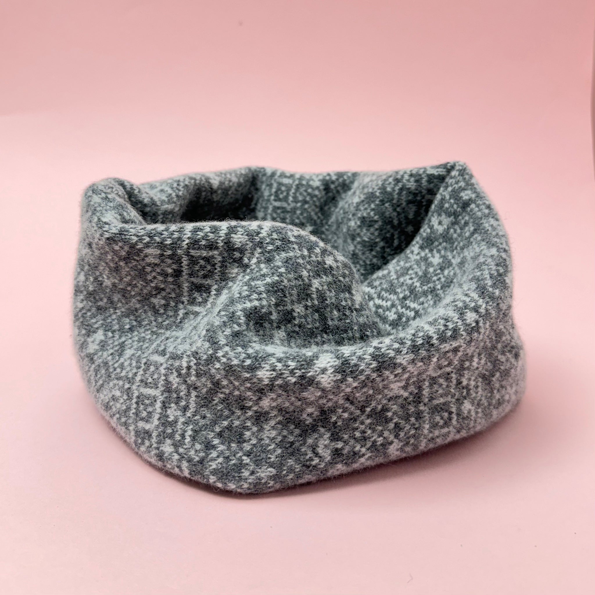 Fair Isle Snood. Pale grey and white.