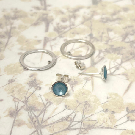 Facing silver and ice blue hoop studs.