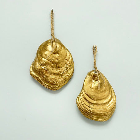 Oyster shell decorated with a unique image. These are finished with twine to hang straight onto the wall, gold gilding on the edges and back. All shells are unique with natural shapes and will vary slightly in size.