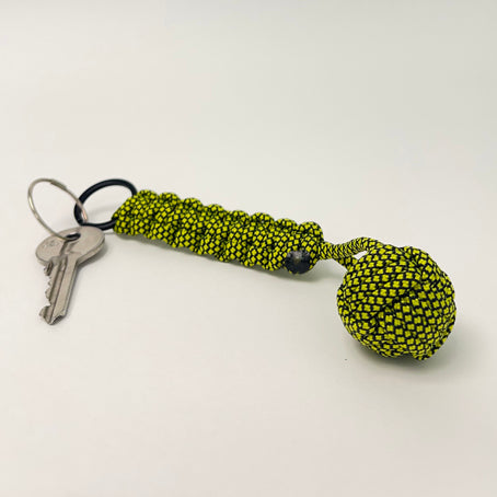 These are hand tied, monkey fist key fobs using approximately 6 feet of parachute cord. Perfect for the house or shed keys and are easy to find in a bag. Finished with a 25mm split ring in black.