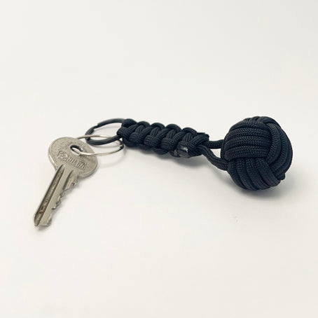 These are hand tied, monkey fist key fobs using approximately 6 feet of parachute cord. Perfect for the house or shed keys and are easy to find in a bag. Finished with a 25mm split ring in black.
