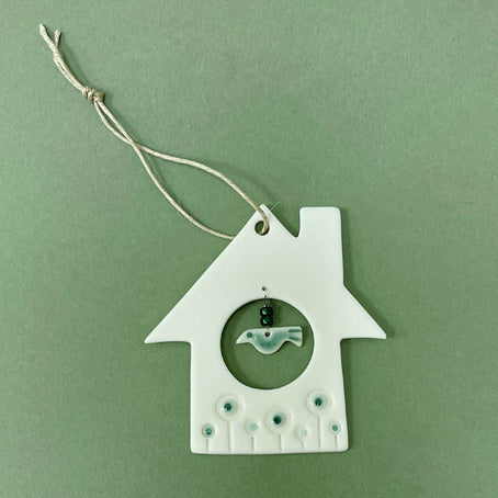 Beautifully elegant porcelain bird house hanging. Presented in a gift box.