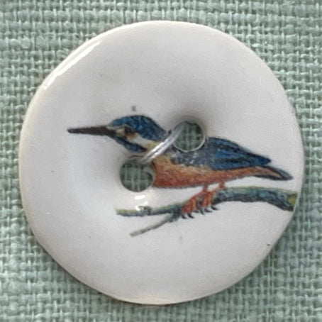 These handcrafted porcelain buttons are decorated with real platinum images. Each button has been kiln fired and the design is permanently fused to the white glaze.