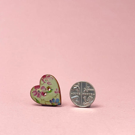 These handcrafted porcelain buttons are decorated with real platinum images. Each button has been kiln fired and the design is permanently fused to the white glaze.
