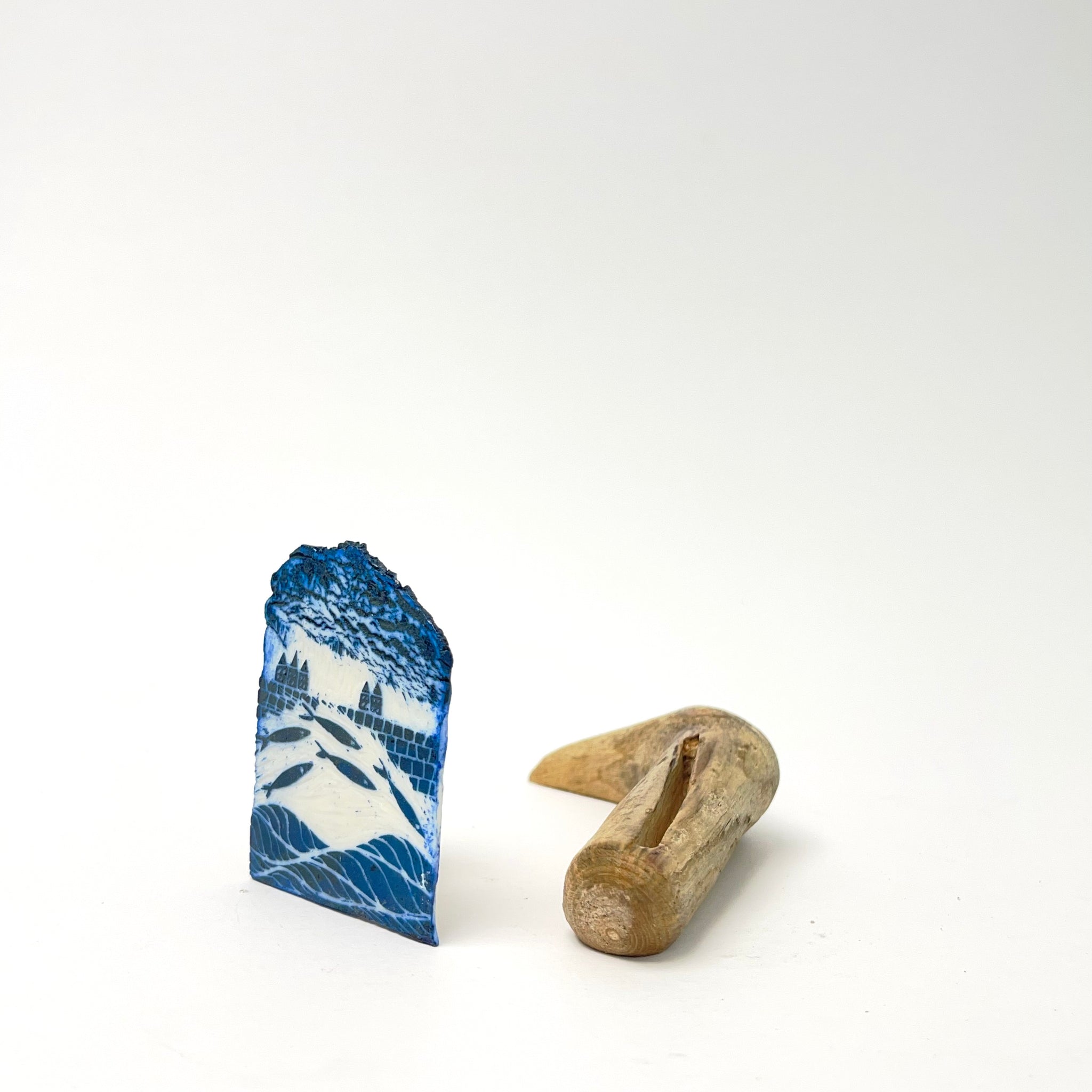 Each of these Nordic style sculpture have a unique individual illustration, using sgraffito technique on one side. They display on a piece of drift wood.