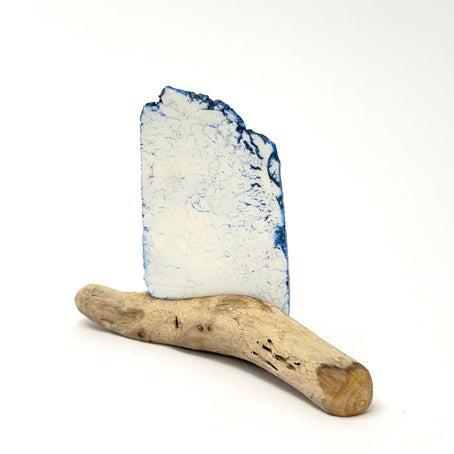 Each of these Nordic style sculpture have a unique individual illustration, using sgraffito technique on one side. They display on a piece of drift wood.