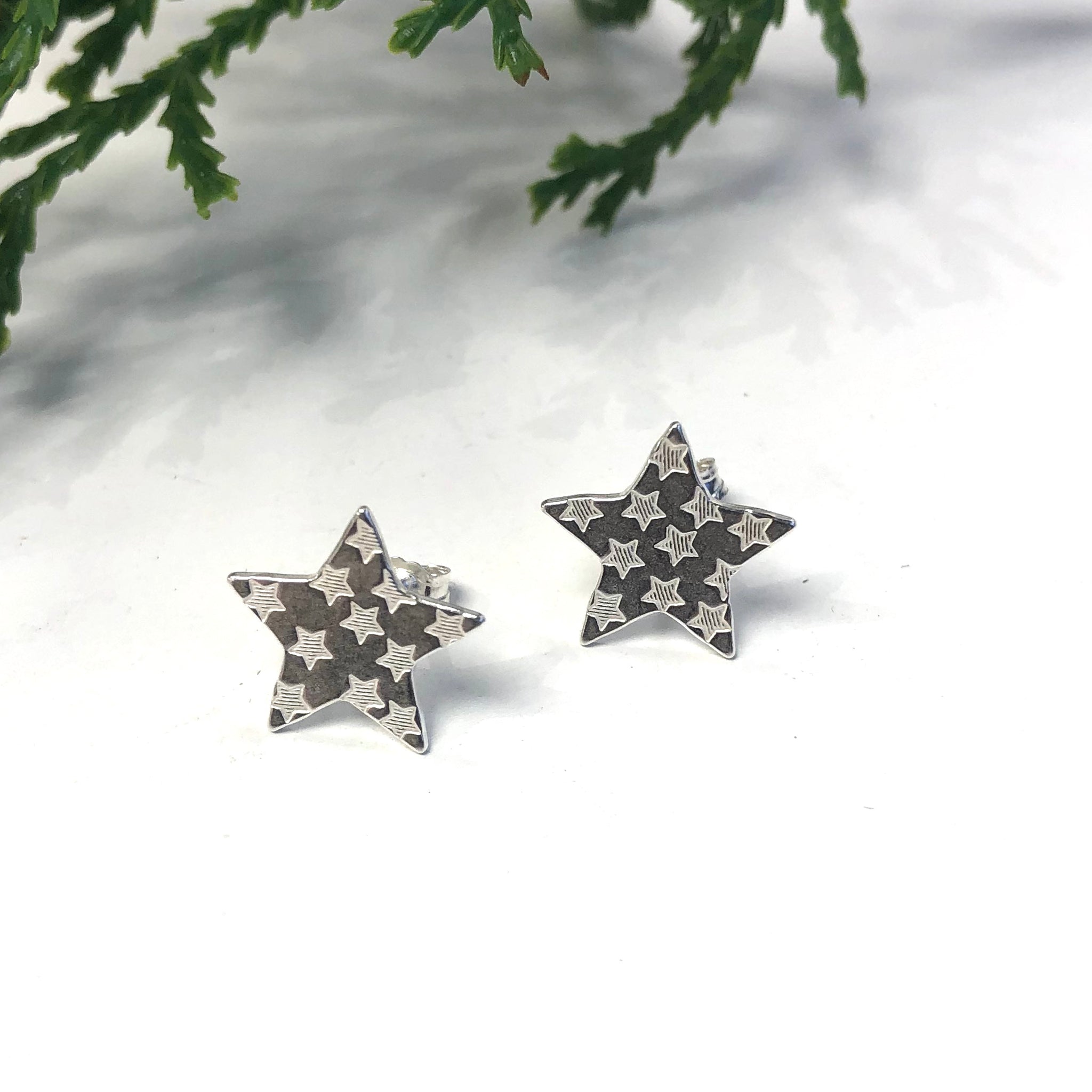 Sweet and simple, hand made silver stud earrings with silver ear posts.