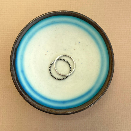 These hand thrown porcelain clay bowls are beautifully glazed and each one is unique. Great little earring dishes or on the table for chilli flakes or sea salt.
