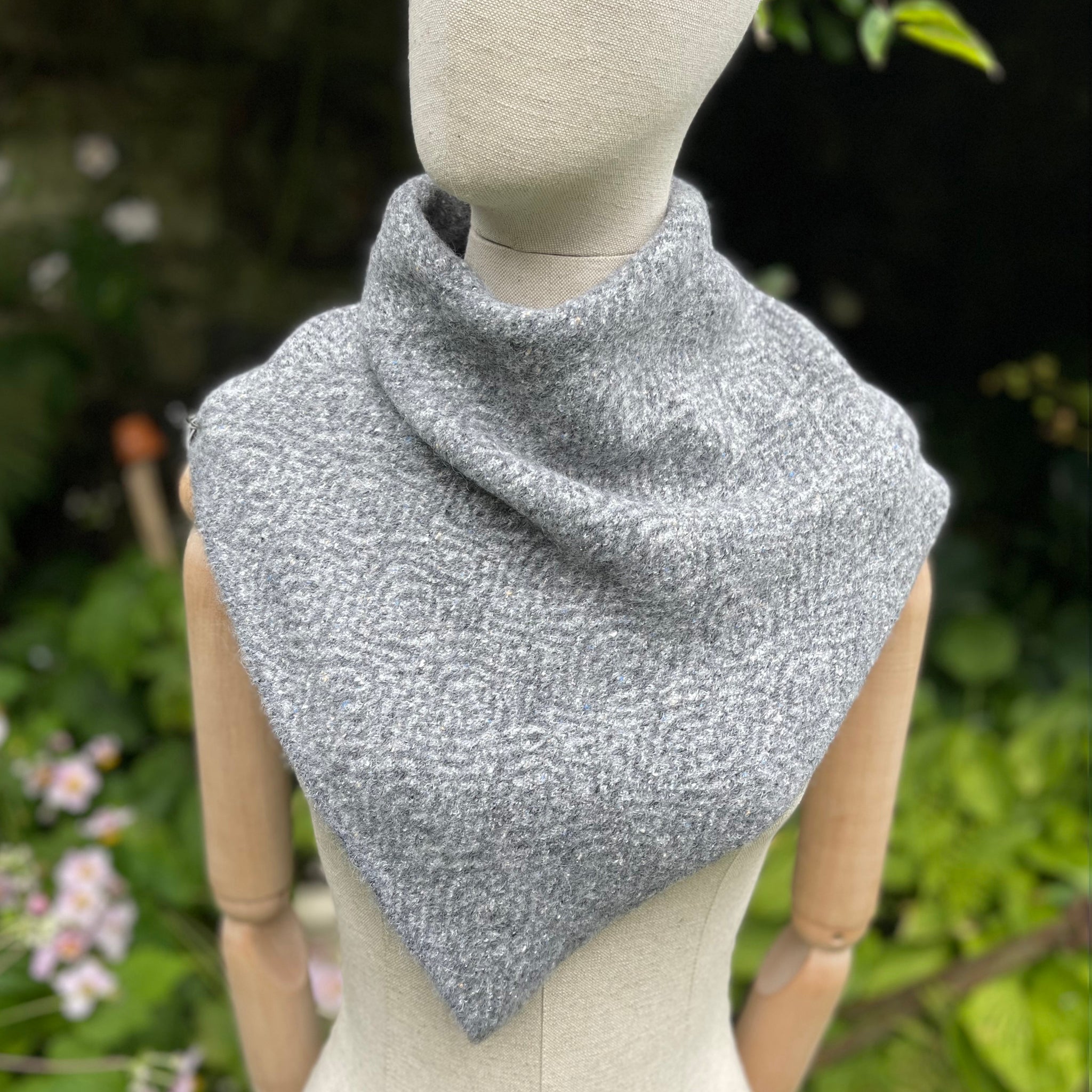 These are hand made in Ireland using luxury yarns. They are very soft and easy to wear. They fill that gap at the front of a coat without being bulky, the point at the front can be tucked in for a simpler look.