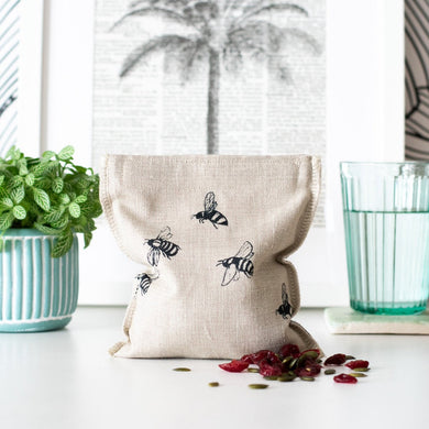 Reusable linen snack bag - natural bee