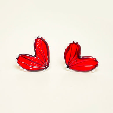 Glass butterfly wings stud earrings - red
