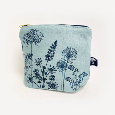 Small linen make up bag - blue wildflowers