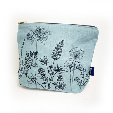 Large linen make up bag - blue wildflowers