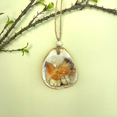 Oyster shell wall hanging - hen and chicks