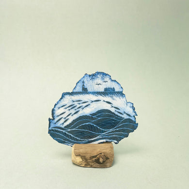 Porcelain Plaque - fish and waves