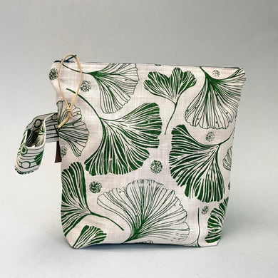 Large linen make up bag - green ginkgo