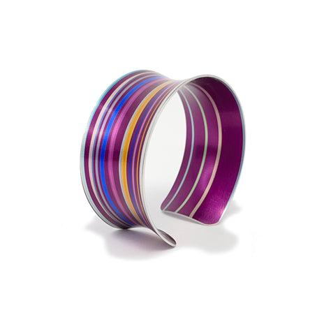Anodised aluminium bangle. The back has its own complimentary patternEach one is unique. Light, comfortable and hard wearing.