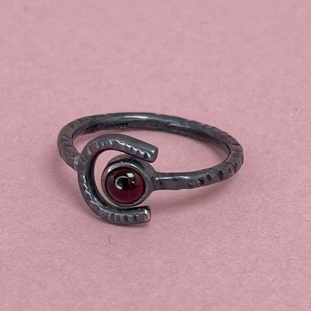 Crescent moon ring - deep red garnet