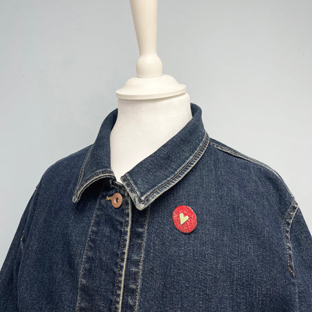 Steel and enamel brooch with heart detail. Traditional brooch clasp on the back.