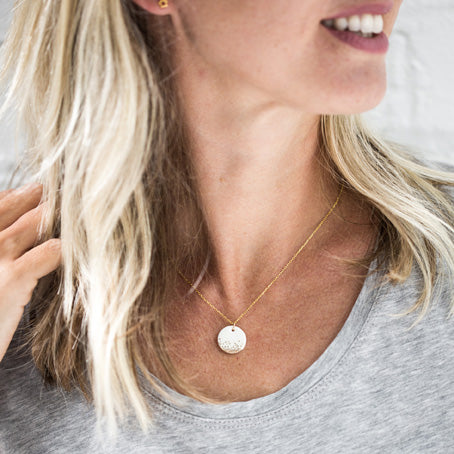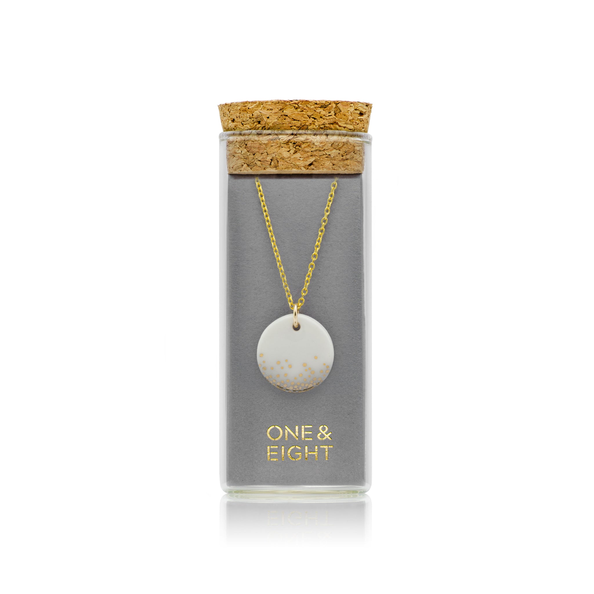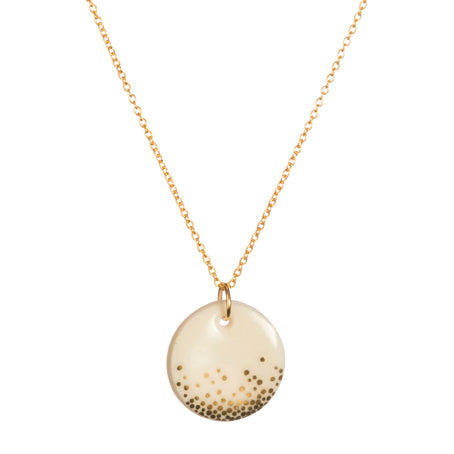 Hand made porcelain necklace with gold haze design on a gold chain, 16" - 18" adjustable gold plated over sterling silver chain. Beautifully presented in a little glass jar with a cork lid.