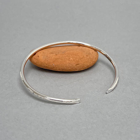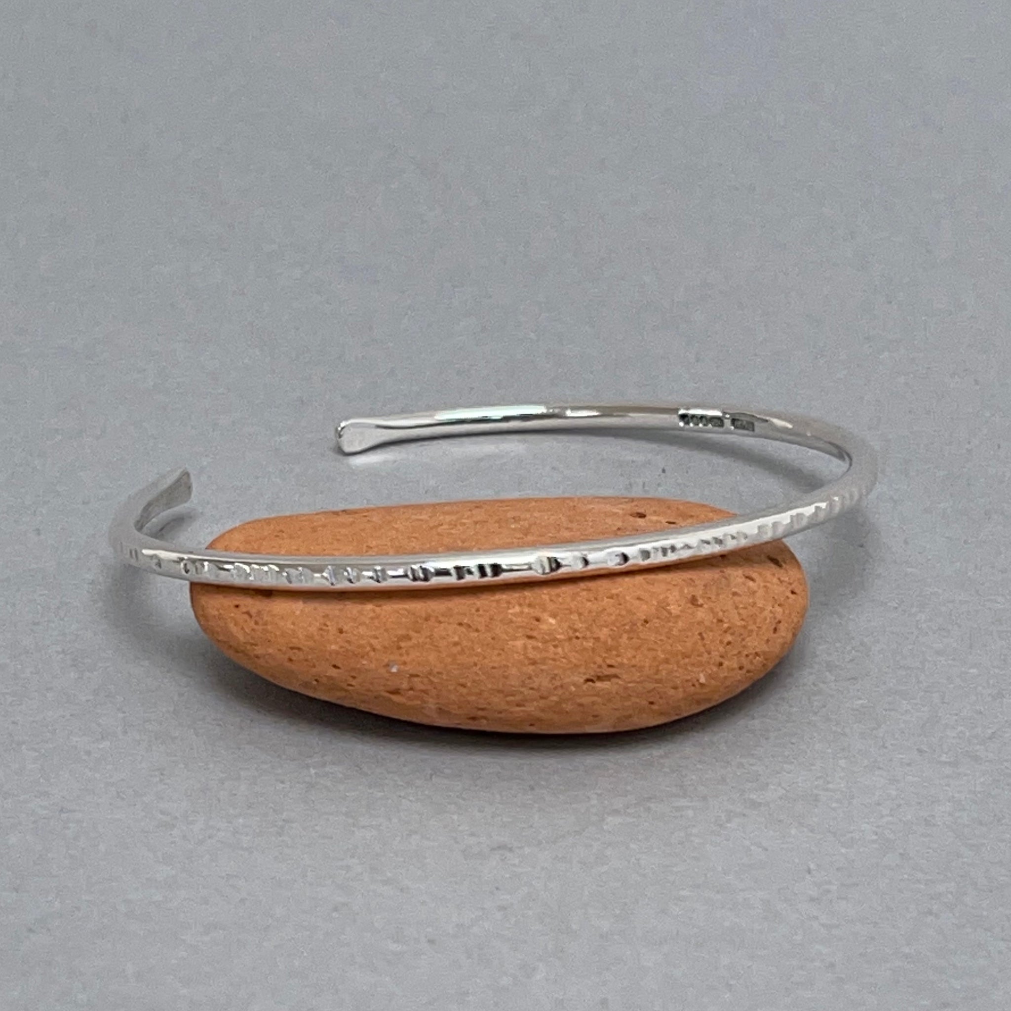 Hand made, sterling silver, textured bangle. Each one is unique, this one has a textured design. Polished finish.