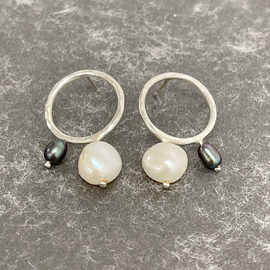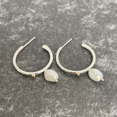 Silver & pearl stud earrings - hoop
