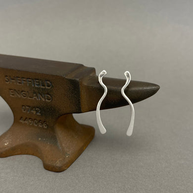 Silver long wave stud earrings